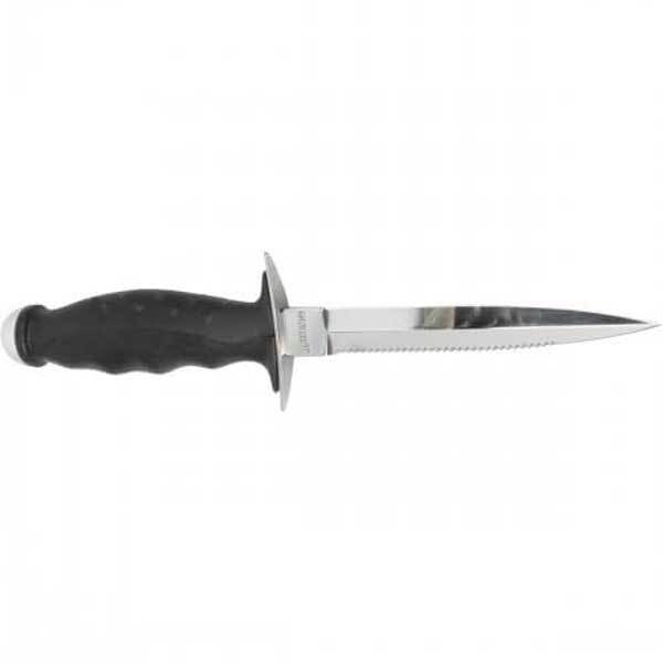 Нож для подводной охоты Mares Shake с лезвием из нержавеющей стали поможет перерезать сеть, леску или водоросли в случае запутывания под водой. А так же справится с рыбой или снастями. На рукояти установлен противовес, что позволяет использовать нож как ударный инструмент.